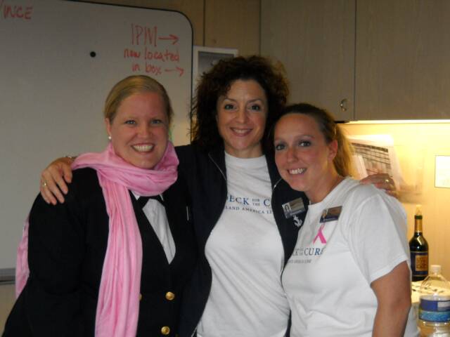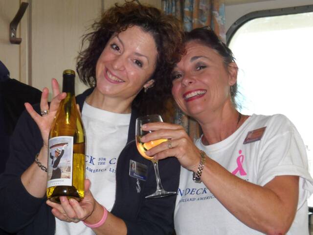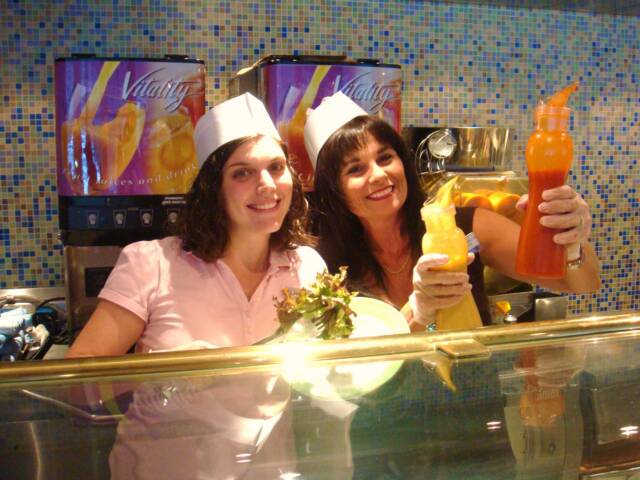 In June we had a noro virus outbreak and all crew had to "volunteer" (lol) to help! This is Hanna and me in our cute little hats serving lunch!