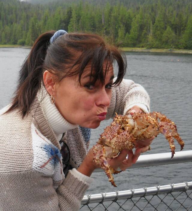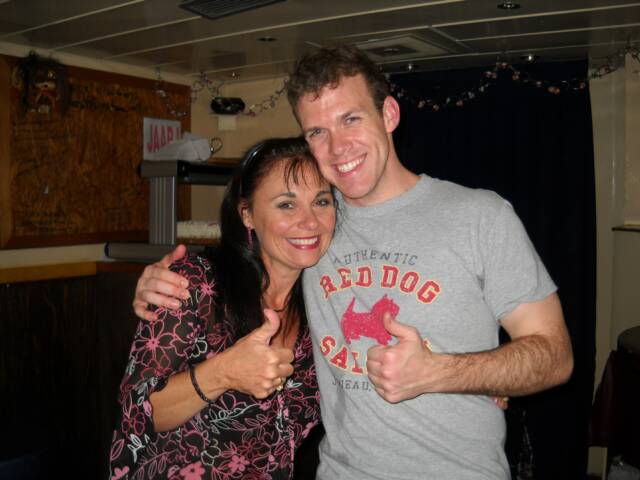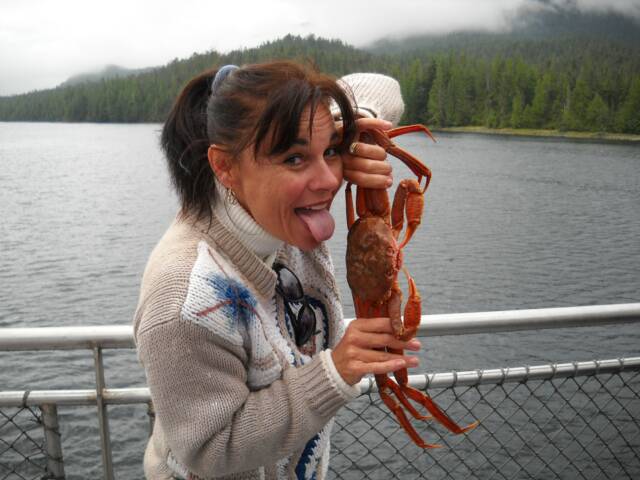 My mom and me with Dan and 2 whopping King Crabs.. YUM!