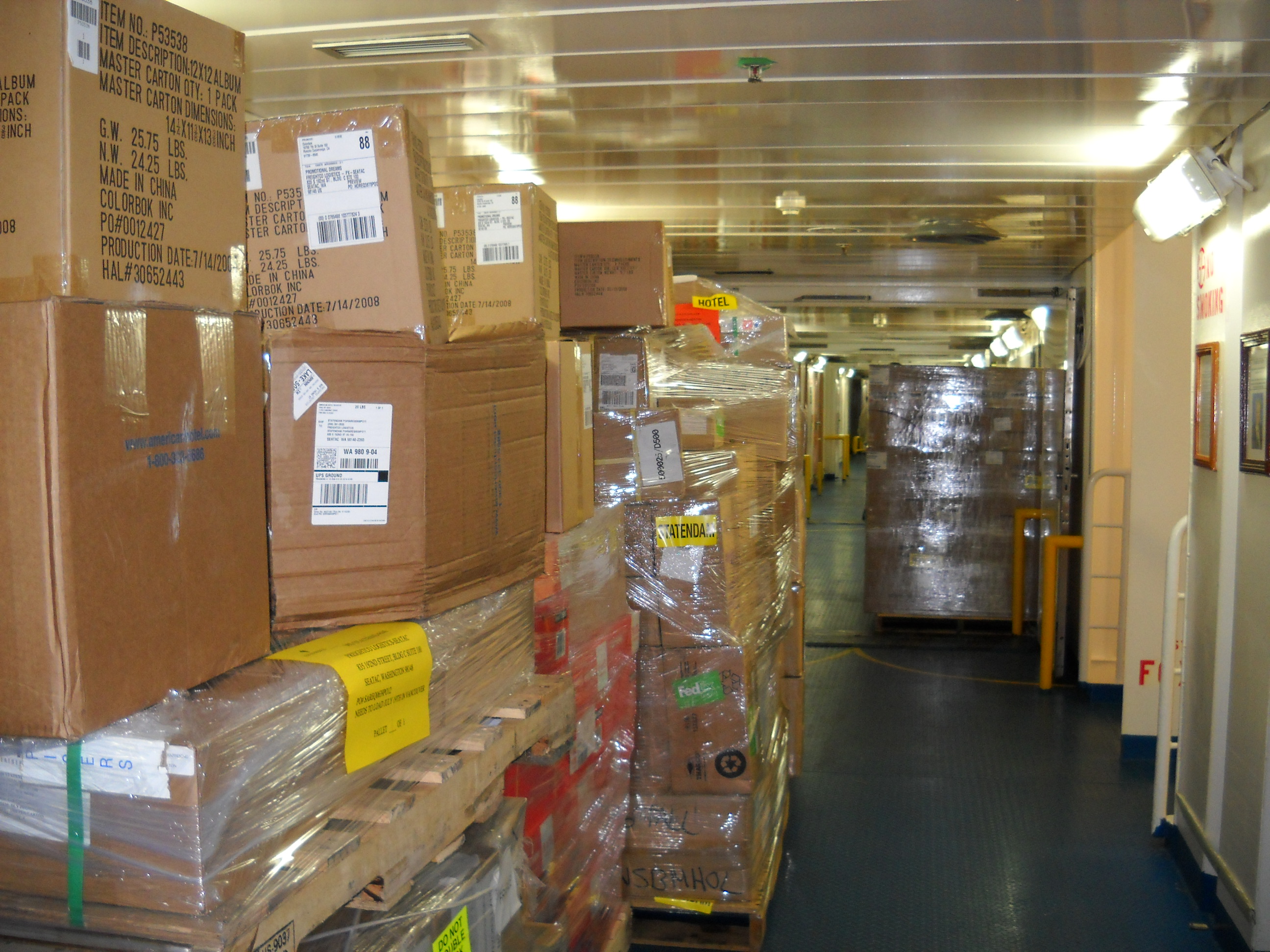 Every Saturday night our ENTIRE hall is STUFFED with guest luggage, as far as you can see... and then Sunday morning, the luggage is gone and replaced with huge quantities of supplies... it's an awesome transformation each week!