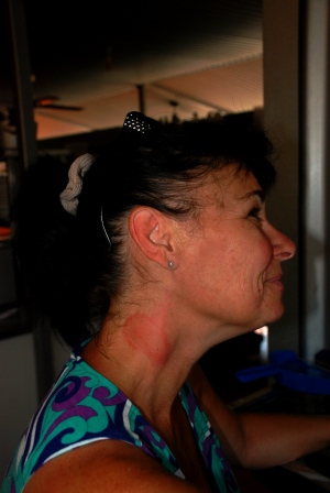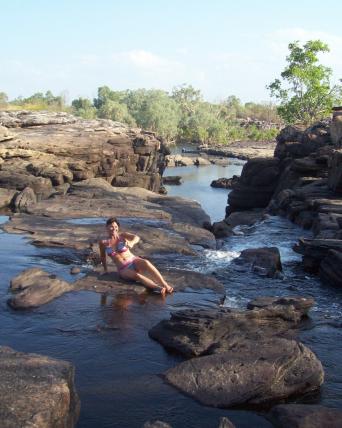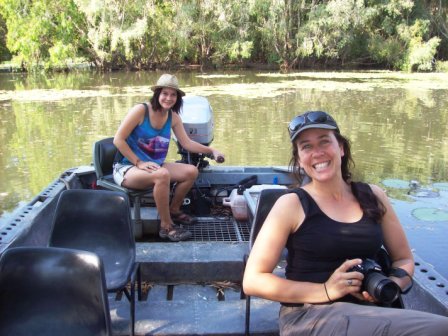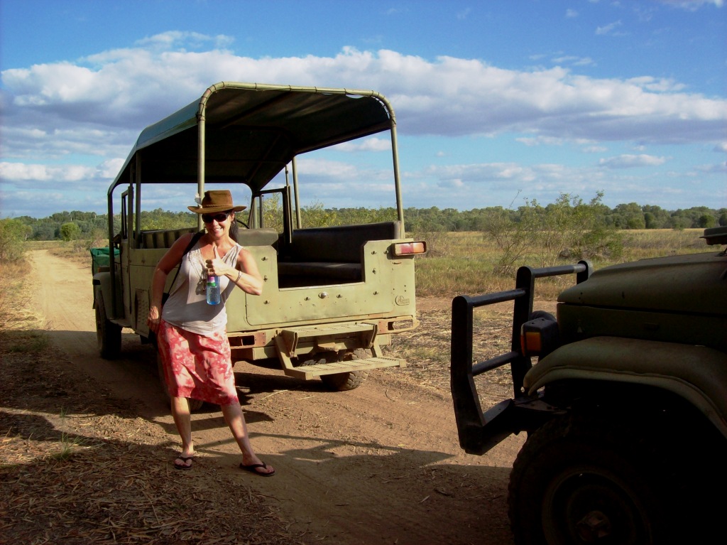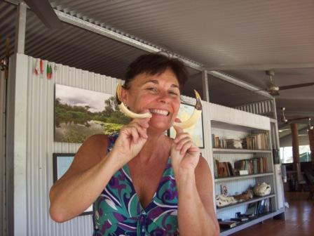I spent a lot of time with Clare and grew to love her like a daughter. She's in her mid-20's and can fix the jeeps and boats, change tires, find/spot/explain birds and wildlife, is a knowledgable and friendly guide with the guests/tourists, knows the fauna and flora, cooks delicious tucker, and she pretty's up in a sundress in the evening! Oh, AND she saved me from falling OFF a cliff ledge once!! :-O