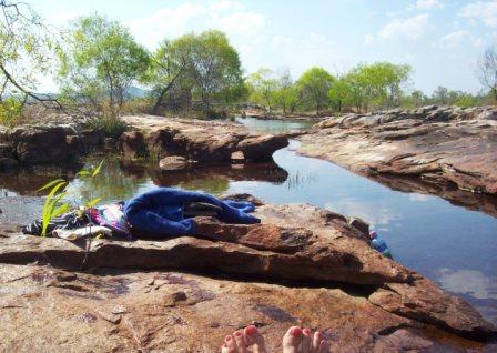 After riding with Clare to check on the grasshoppers following a nearby fire, Mirra and I asked her to leave us at the swimming hole for the day! In the late afternoon, we walked 45 minutes back to camp... hot & sunburned!!
