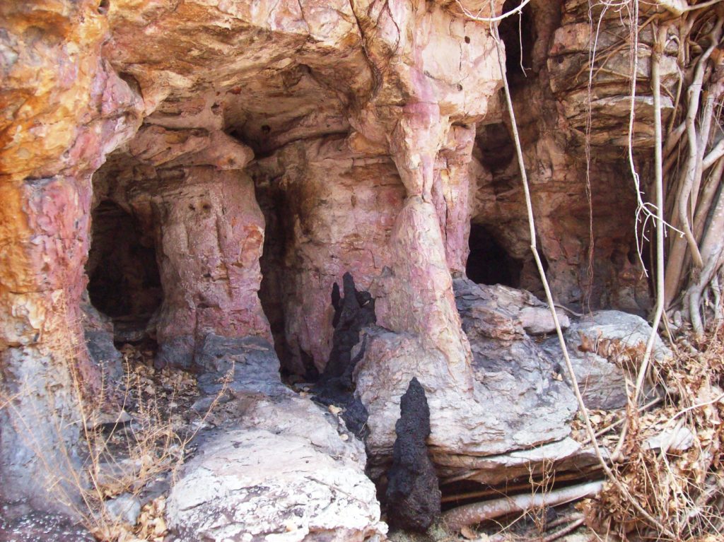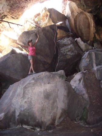 See below... we actually climbed up HIGH on the rocks behind me!