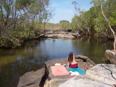 Top of a high "Aboriginal Sacred Site" overlooking the vast flood plain, with the wind in my face!!