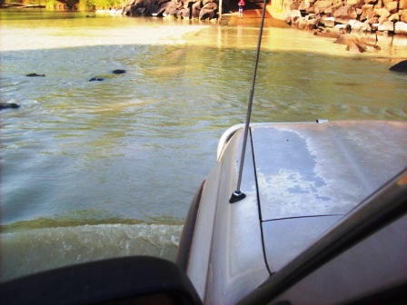 It was a 5 hour drive back to Darwin! Our camp road is 40km long, and then you reach the MAIN road (which is dirt) LOL!! Also, notice the picture above as we drive through a river... see the croc by the road on the left??