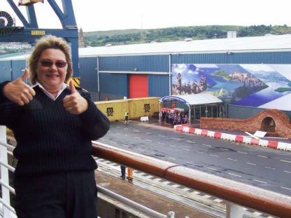 JoAnn, Lead Medical Officer is happy that Ron (my husband) is reboarding the ship after staying with a sick woman for 5 days in Edinborough! Once again, Ron was a hero and our officers and passengers were appreciative of his unselfishly volunteering to help!