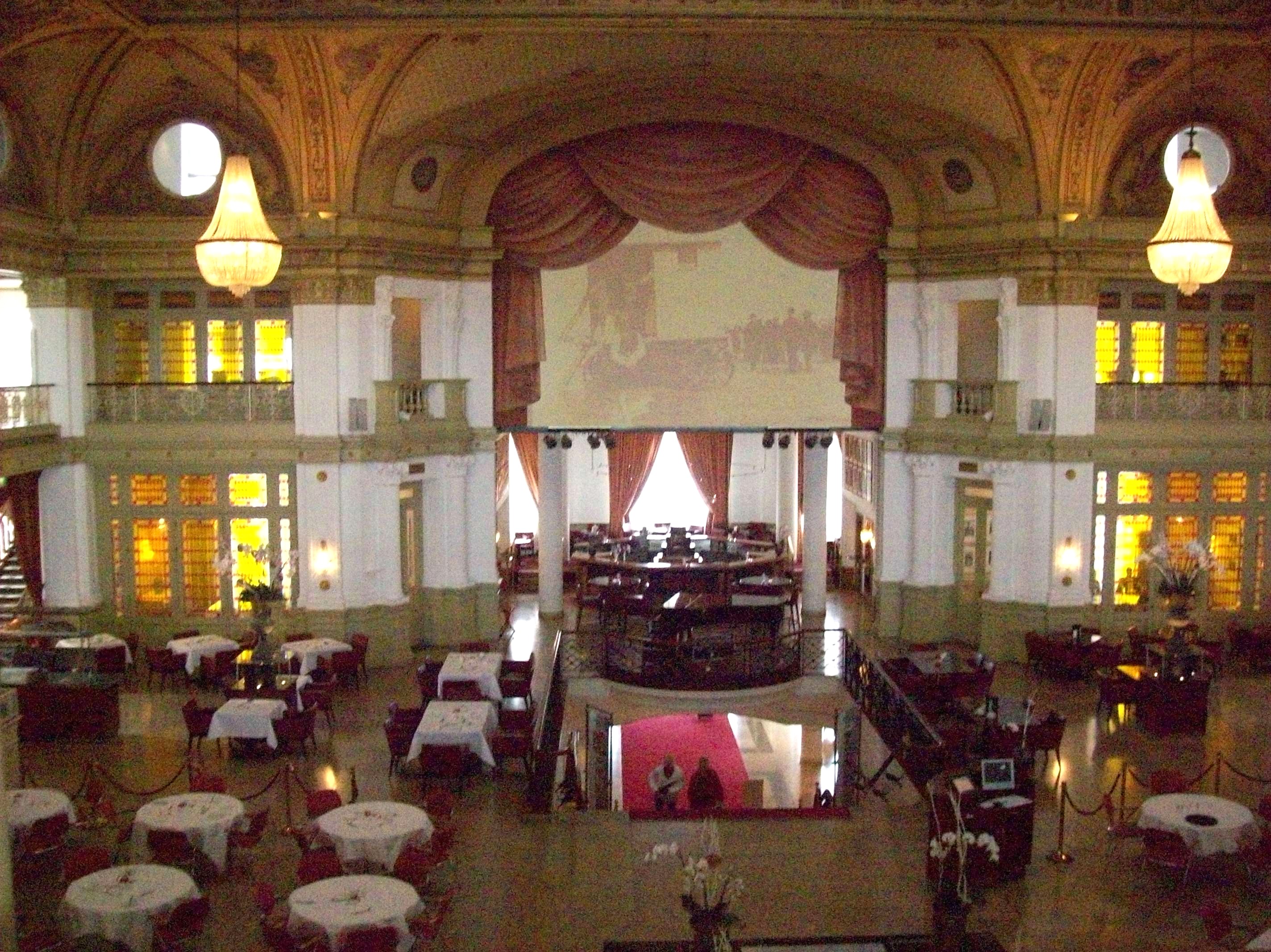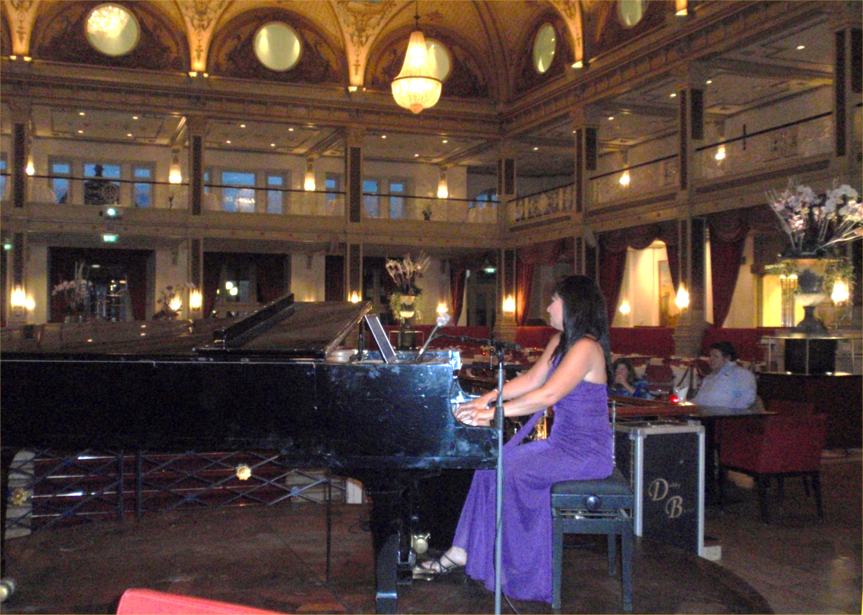After leaving Michael’s office, I anxiously got my equipment set up and tried to test the PA system with my hook ups! Arrrggghh!! This part is always nerve racking for me! Things (of course) didn’t work properly and so they call “tech dept.” The tech department is also known as the “maintenance department”! LoL! So here comes Nicco, a super nice guy that tries to help the situation! He looks to see if I’ve plugged into the electrical outlet!?!?! Ha ha ! Geez, who would think of that??? Ha ha! After his inspection revealed that I had indeed properly plugged in, he had NO idea how to get the mixing board to play through the house speakers! Fortunately, when the bartender arrived 30 minutes later, he went to the locked storage room, turned on an amplifier, flipped 2 switches to aux. and tah dah… I had immediate sound in the massive areas of restaurant, bar, rotunda and galleries!