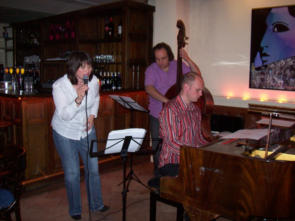 The pianist was an excellent jazz player and the other fellow played upright bass, flugelhorn and sang. They were both VERY good musicians and invited people in the cafe to come and sing a jazz song.
