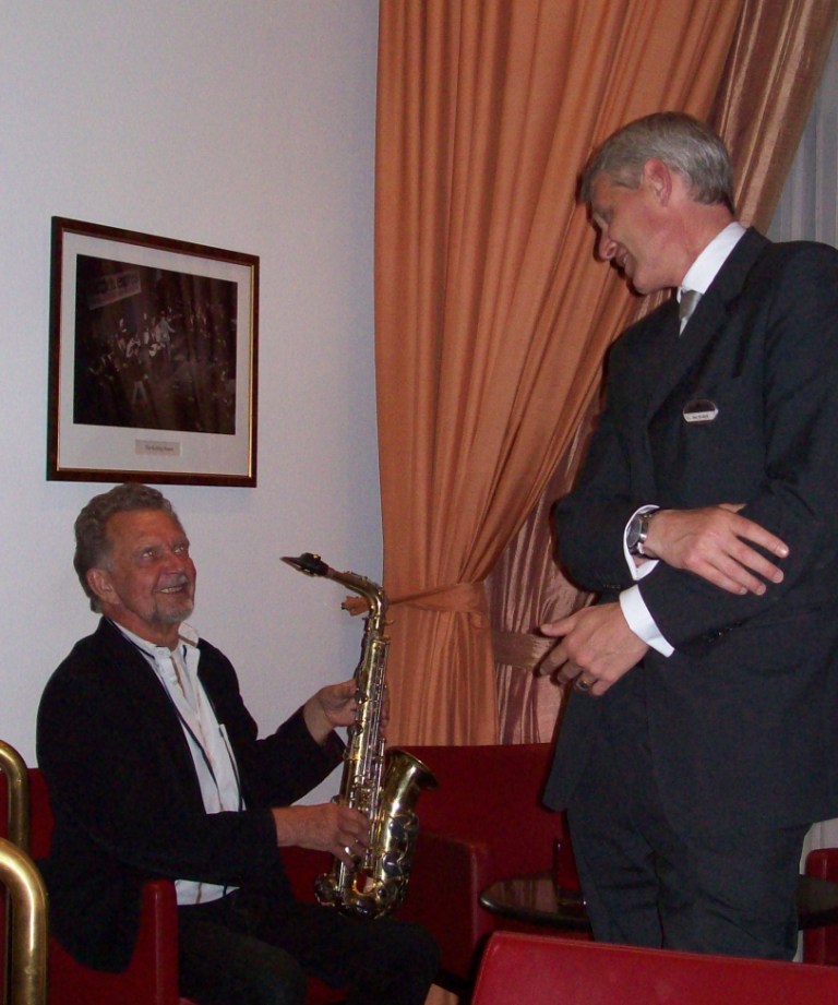 Frits working his magic on my alto and chatting with Bas, our restaurant manager!