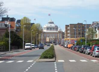 Four "roads" here... grey is for pedestrians, red is for bikes, main road for cars, final lane is for trams! Cool, huh? .
