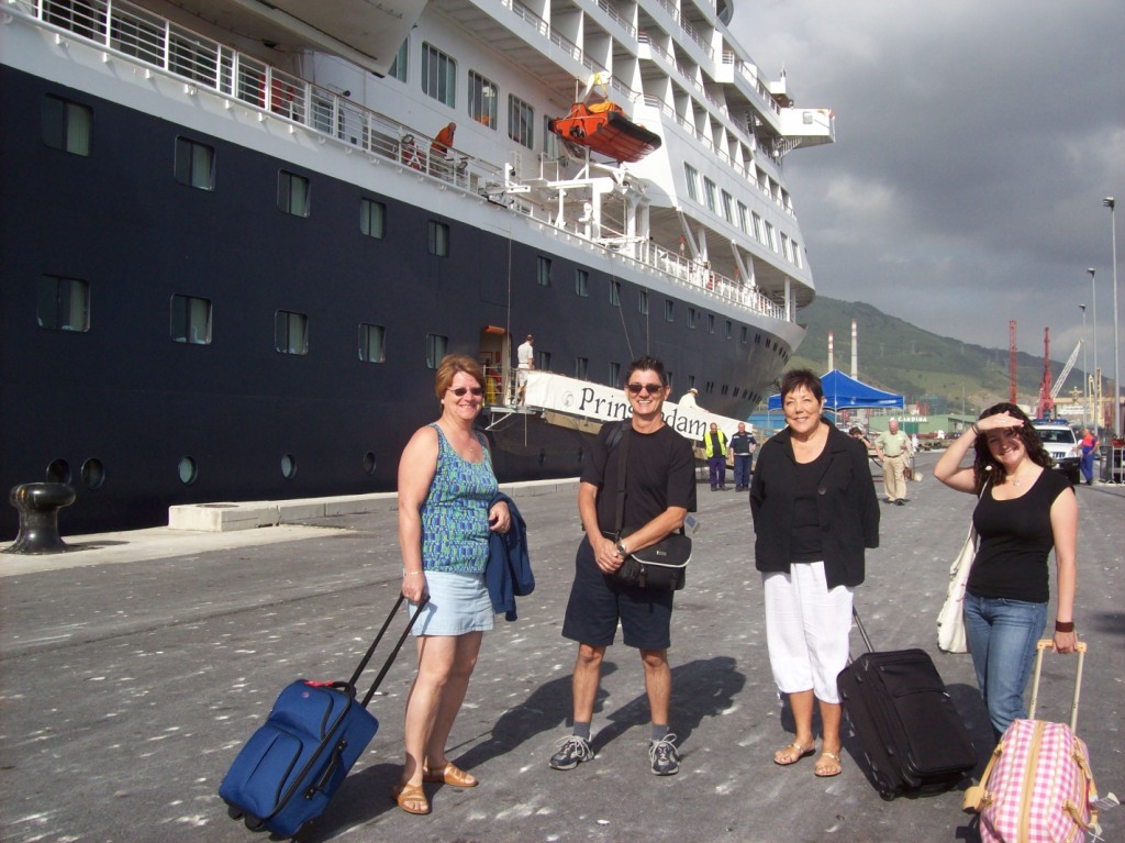 Most of the really good pictures you see were taken by Ron on his nice Nikon... I go for the compact stuff as you can see here! And, see the Prinsendam in the background? Nice shot, Ron!
