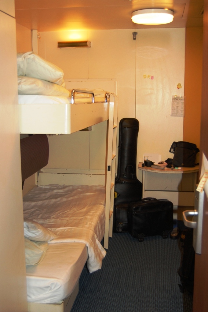 First things first... a sad attempt at cleaning the nicotine off the cabin walls. This micro mini, one person (one bed) cabin STUNK worse then ANY ashtray you've ever smelled! Thank goodness it was only for 1 night, and then we got a room relocation.. bunk beds!!