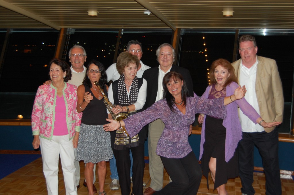 A ship error forced 21 family/friends off the ship in France. Only 4 were allowed to return and here is Ron with his "harem" when they returned 2 days later in Bilbao, Spain!
